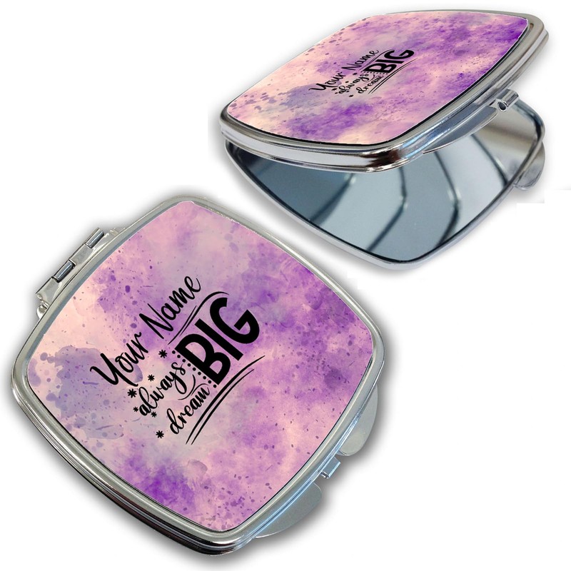 Bleu Reign Compact Personalized Pocket Mirror Custom Name Purple Smoke Always Dream Big