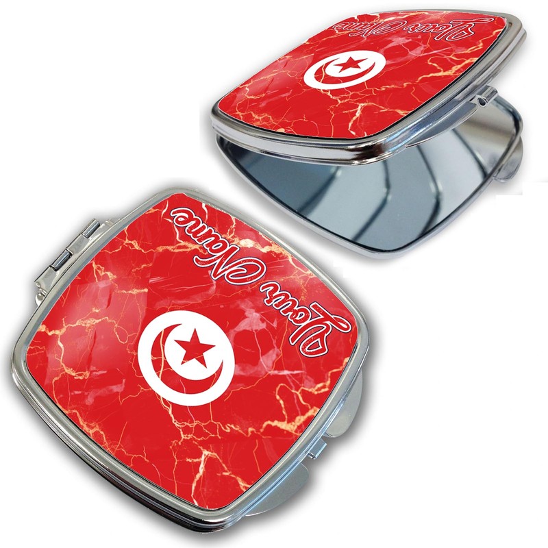 Bleu Reign Compact Personalized Pocket Mirror Custom Name Tunisia Flag Marble Monogram