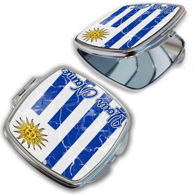 Bleu Reign Compact Personalized Pocket Mirror Custom Name Uruguay Flag Marble Monogram