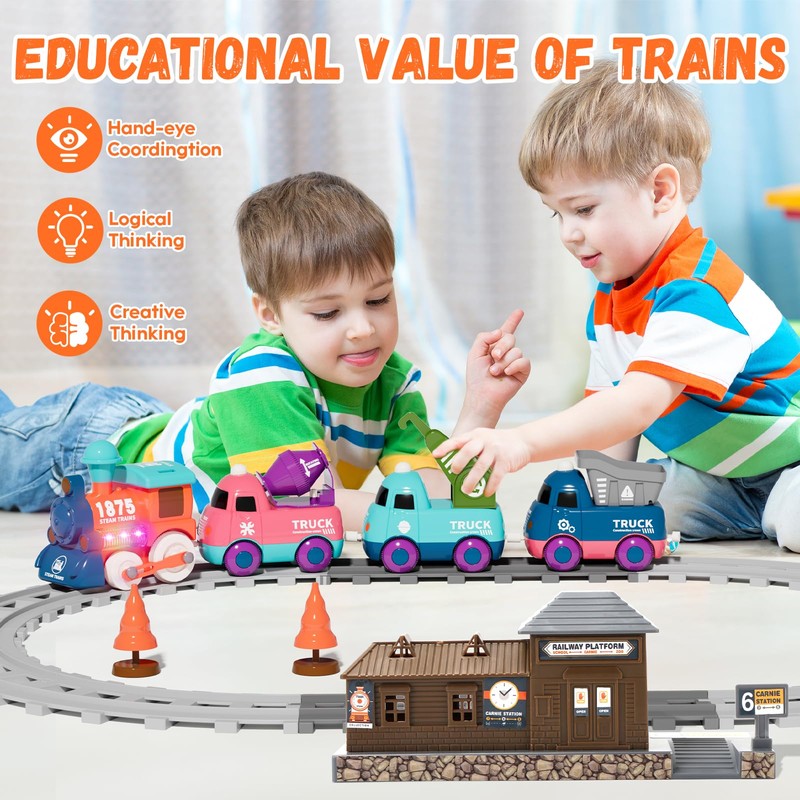 - Our train toys set is made of safe, smooth materials with no rough edges, ensuring a secure and durable play experience for your child