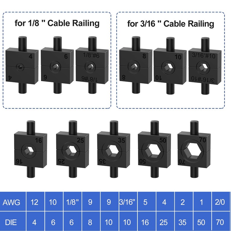 - 【EASY TO INSTALL】: Invisible Receiver with hexagon socket. Invisable after being installed due to its small size and consice appearance. These swage cable railing end fittings require a special swaging tool in order to secure them on the wire. Hydraulic Crimper Tool & Cable Cutter: B083Z5JQJ9. 1/8" Stainless steel protector sleeves: B091C66ZRV. for stair cable railing, compatible with 5/16" ID Angle Washers: B0BXD6YDLN.