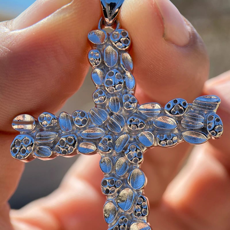 Bling Cartel Mens Real Solid 925 Sterling Silver Large Nugget Cross Hip Hop Charm Pendant