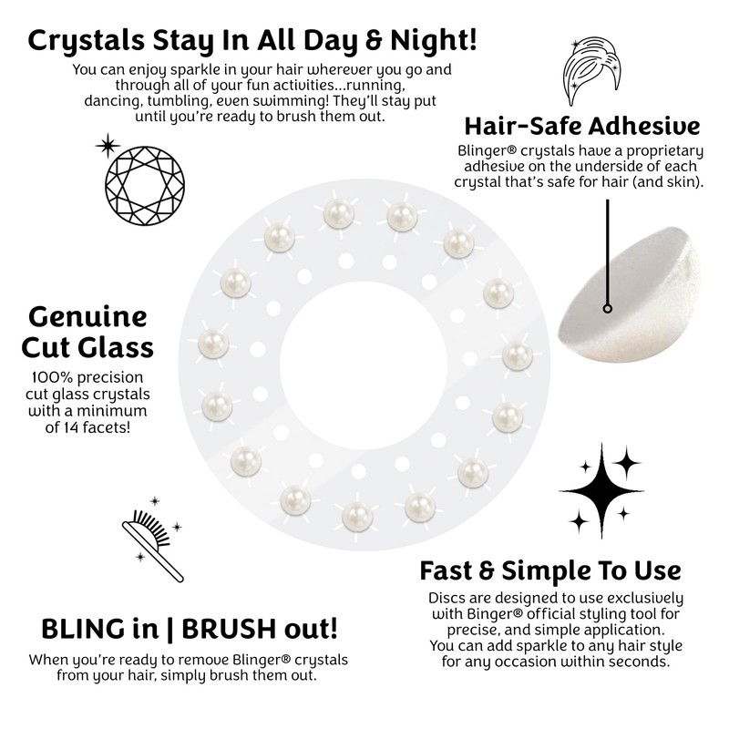 blinger Crystal Refill Pack | 5 Discs - 75 Precision-Cut Glass Crystals | Styling Tool not included | Ivory Cream Pearls 7 mm