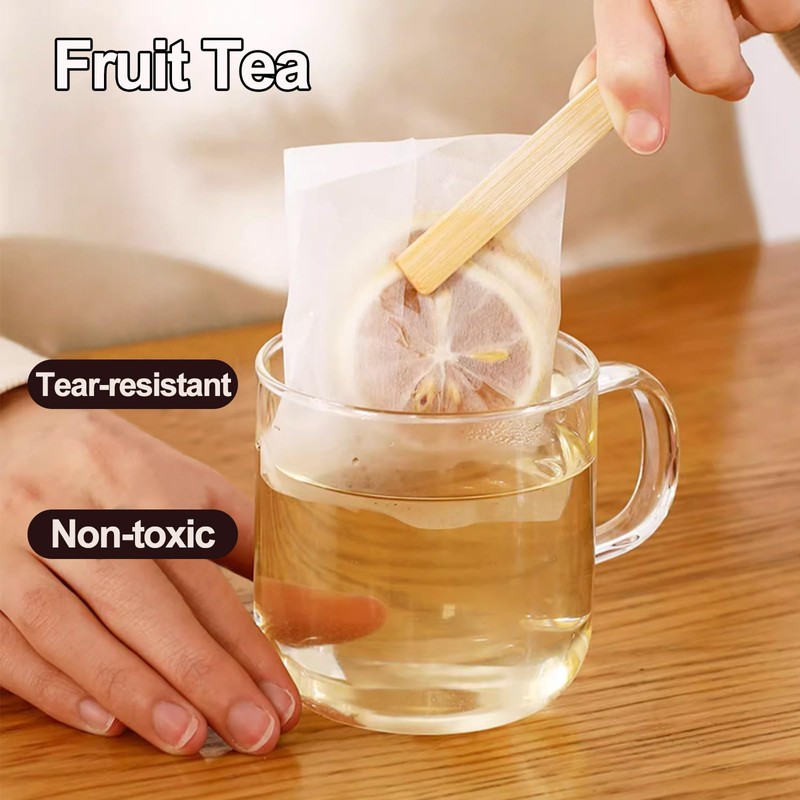 3.Not only are these disposable tea filter bags easy to fill and seal, but they are also hassle-free to dispose of after use. They are biodegradable, making them an eco-friendly choice for tea lovers who value sustainability. With no need for additional clips or cleanup, these bags simplify your brewing process and ensure a tidy and enjoyable tea-drinking experience.