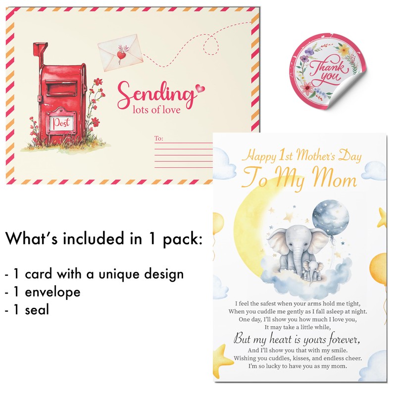 - PREMIUM QUALITY: Crafted with care, 1st Mother' s Day Card is printed on high-quality, eco-friendly cardstock for a luxurious feel. This card will be a wonderful and meaningful way to express your love for your mom