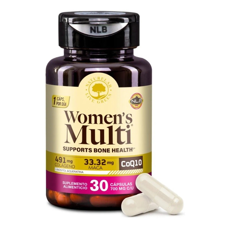 Descubre la vitalidad con Blinlab Women's Multi. Este multivitamínico sin sabor (60 cápsulas) está formulado con vitaminas, minerales, Colágeno, Ácido Hialurónico, Resveratrol y CoQ10. Aumenta tu energía, fortalece tu inmunidad, mejora piel, cabello y uñas, y brinda soporte óseo. ¡Es sin gluten ni lactosa! Toma 1 cápsula diaria para un bienestar completo.