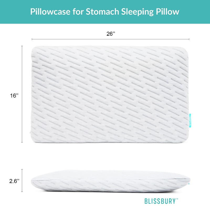 BLISSBURY Stomach Pillow CASE (Case Only) - Standard Width (2.6" H or 3.3" H (White)