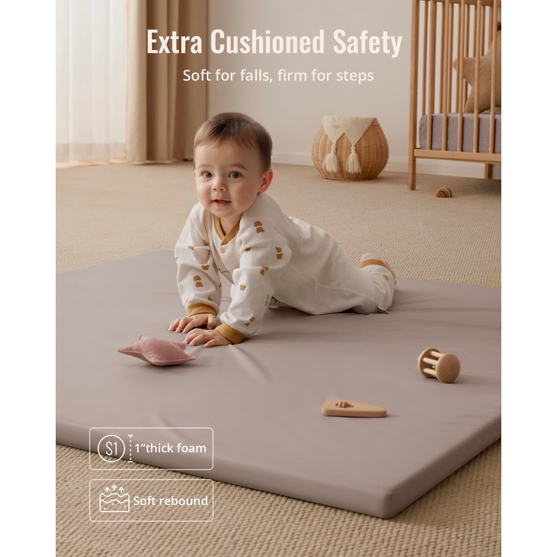 Blissful Diary Vegan Leather Baby Play Mat, 50x50 Thicken Foam Cushioned & Waterproof Playpen Mat for Infants and Toddlers, Stylish and Just Wipe-Clean Playmat for Baby Play on Floor, Taupe