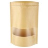 **FEATURES** \-- Different size available: There are 6 sizes to choose from: 3.5 X 5.5 inch; 4.7 X 7.9 inch; 5.5 X 7.9 inch; 6.3 X8.7 inch; 6.7 X 9.5 inch; 7.1 X 10.2 inch. \-- Each bag features PE inner membrane, Which is moisture proof and can be sealed by heat sealer, keeps your products dry and fresh. \-- Bags can be self stand up after fill by items. \-- The Kraft bags with rectangle matte window to display your product directly. \-- Easy tearing design: U shaped top opening for easy open. \-- Applications: Ideal to pack in candy, loose leaf, coffee beans, oats, nuts, cookies, bath salt, spice and so on. **Note:** Due to the surface of kraft pouch is waterproof, it is not suitable for stamp or ink, but stickers can easy work on it.