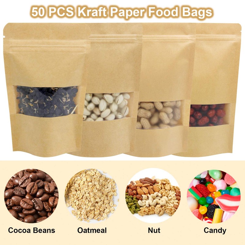 - Quantity & Material: Comes with 50 pieces kraft zip lock bags; Made from food grade kraft paper and PE, which is odorless, reusable and moisture proof, keeps your products freshness.