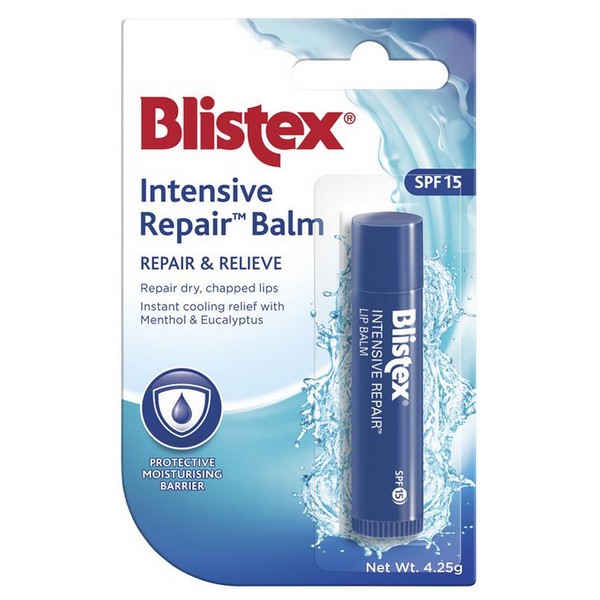 Repair dry chapped lips and instantly cool with eucalyptus and menthol. Specially formulated to wrap your lips in a protective moisturising barrier to restore hydration and prevent further damage from the elements. Blistex