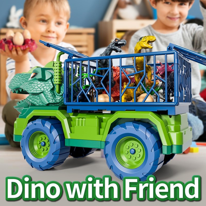 - Big Dinosaur Transport Carrier Truck Set: This 15-in-1 monster truck featuring a roaring T-Rex head design, perfect for kids toys boys 3-5,transporting dinosaurs with large cages, inspiring dynamic play with included dino figures and toddler-safe car toys.