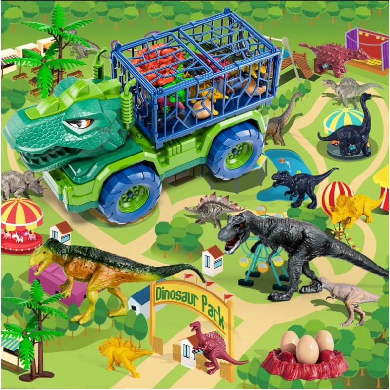 - BLmukce Large Dinosaur Transport Truck Car Set with Dinosaur Activity Play Map