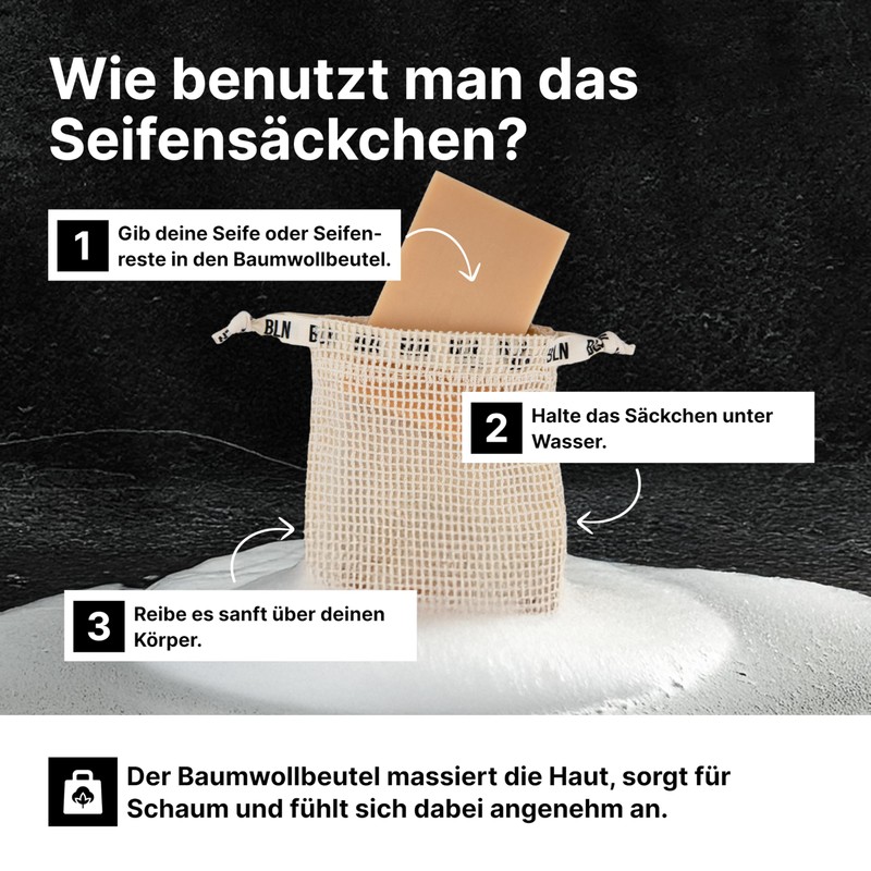 - Soap bag for extra care: the cotton soap bag ensures gentle exfoliation, hygienic drying and a longer shelf life of the soap - for the optimal cleaning effect