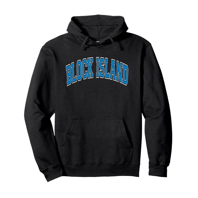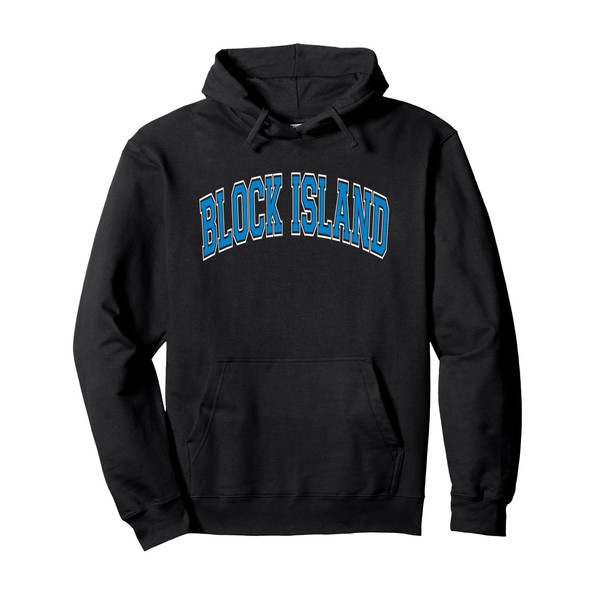 Block Island Arched Blue Text Pullover Hoodie