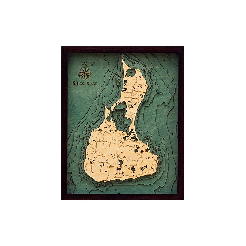 WoodChart's beautiful map of Block Island, Rhode Island. A 3-D nautical wood map featuring Block Island. Off the coast of Rhode Island One of the Nature Conservancy's "Last Great Places", 44% of Block Island is a dedicated nature preserve. The island has just over one thousand full-time residents but its population swells in the summer months, especially during their annual Fourth of July celebration. Points of Interest Include: Old Harbor, New Shoreham, Mohegan Trail, Rodmans Hollow, Whitman, West Beach, Heinz, Great Salt Pond, New Harbor and Sachem Pond. Our wood charts are made from Baltic birch and have a solid wood frame. They come ready to hang.