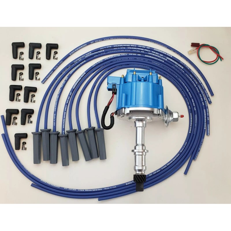 Block Performance Parts PONTIAC 350 389 400 455 HEI DISTRIBUTOR + 8.5mm BLUE UNIVERSAL SPARK PLUG WIRES