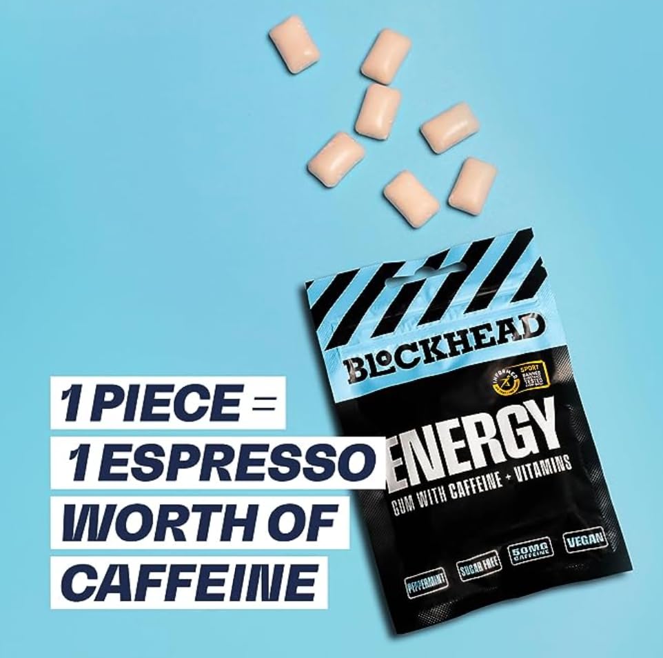 - Why Blockhead - Unlike hard-to-swallow caffeine pills, high-calorie energy drinks and sweet gels, Blockhead Gum is small, portable, sugar-free, calorie-free, aspartame-free, non-GMO and gluten-free. Informed Sport certified and batch tested.