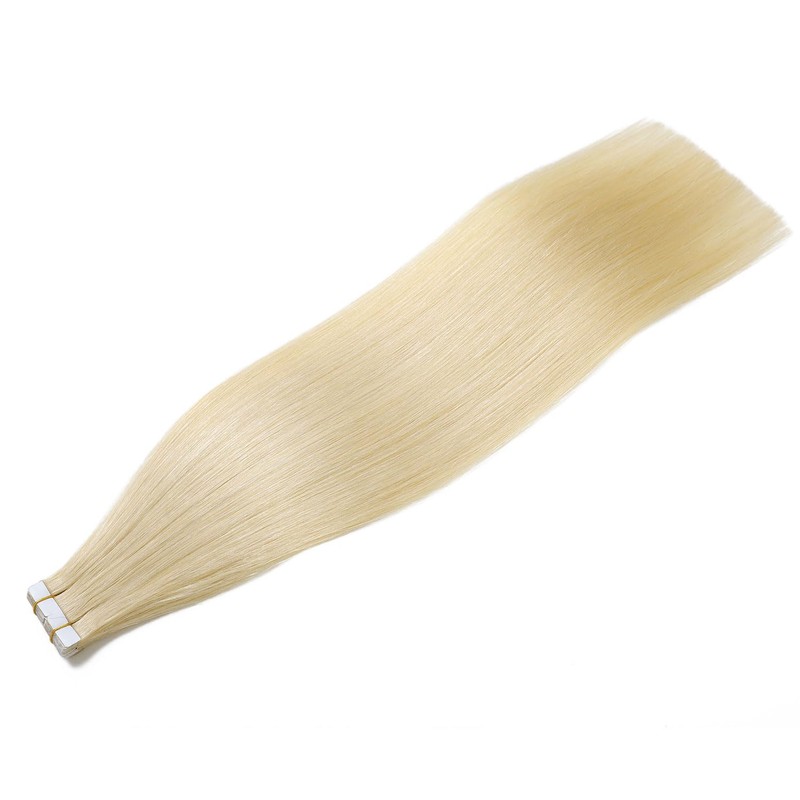 Blonde Hair Extensions #60 Tape in Hair Extensions Human Hair 16 Inch 50g/pack 20 Pcs Invisible Narrow Edge Skin Weft Tape Ins Add Volume T#60 16in