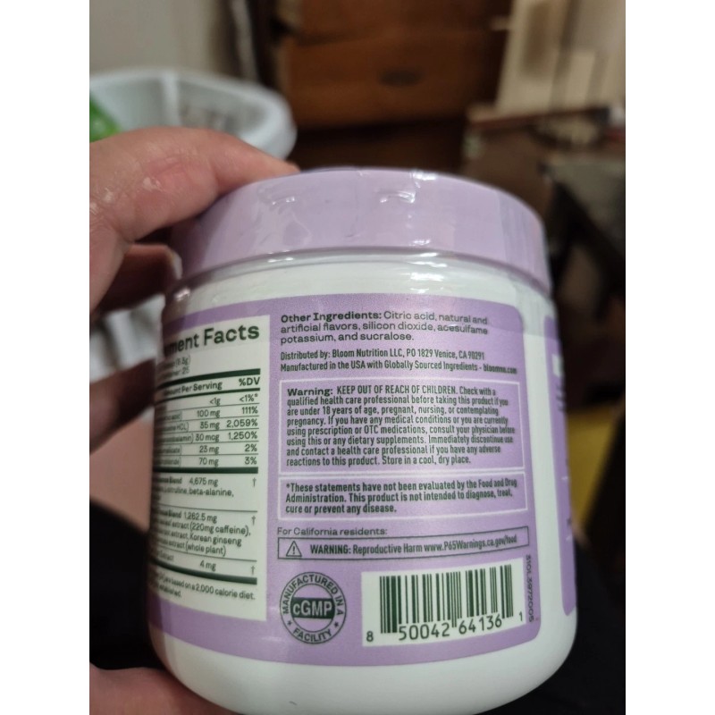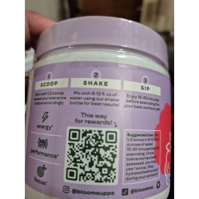 Bloom High Energy pre-workout Raspberry Lemonade 25 Serv 7.3 Oz #1 Supplement.