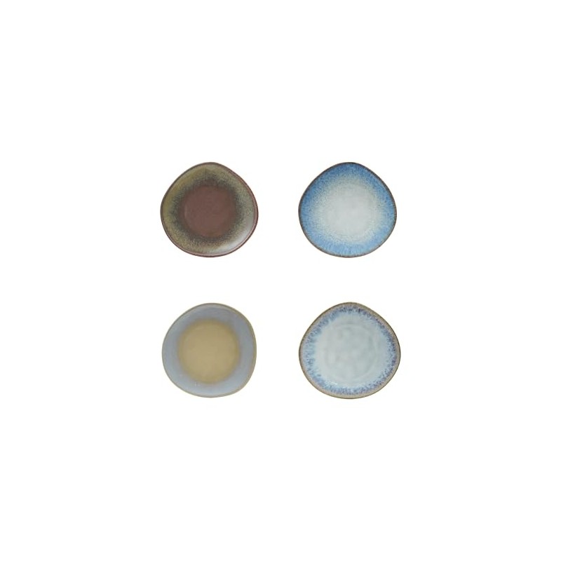 Bloomingville 4-Piece Stoneware Organic Shaped Plate with Reactive Glaze, Multicolor