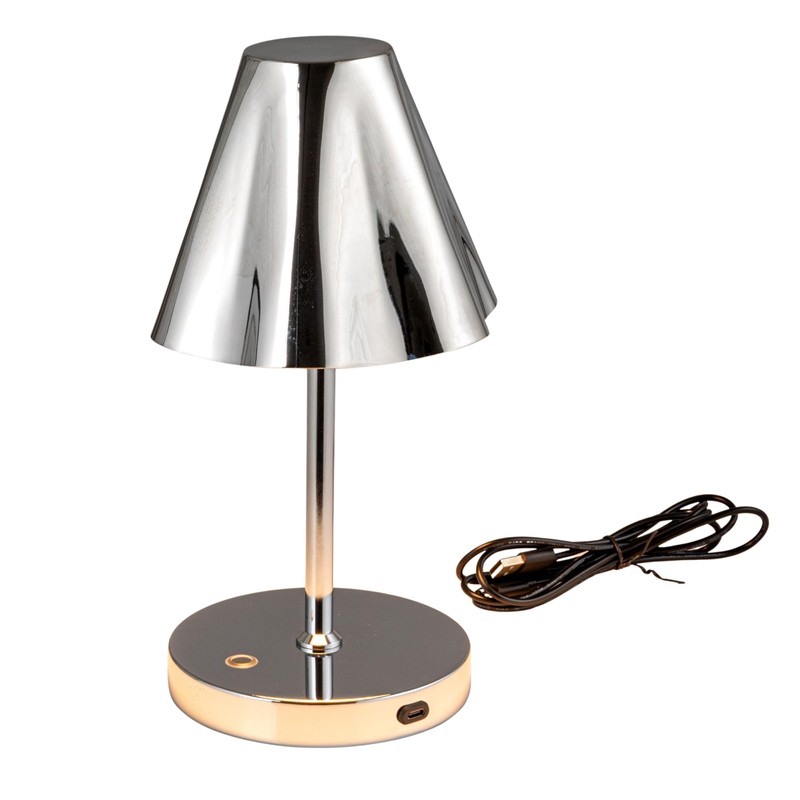 Bloomingville Metal LED Rechargeable Table Lamp with Touch Sensor, Silver Finish