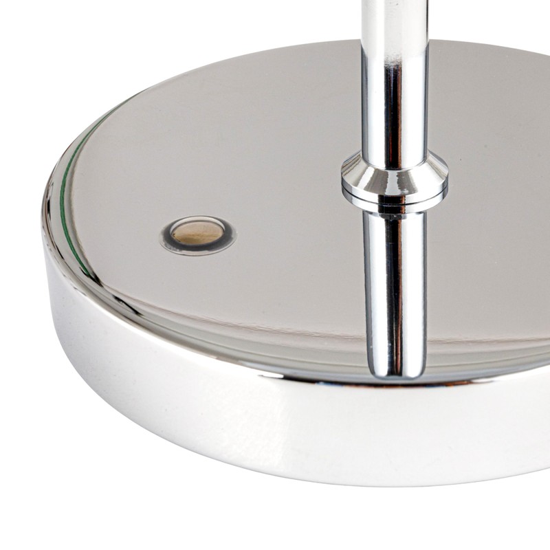- A sleek metal LED table lamp with a silver finish and touch sensor
