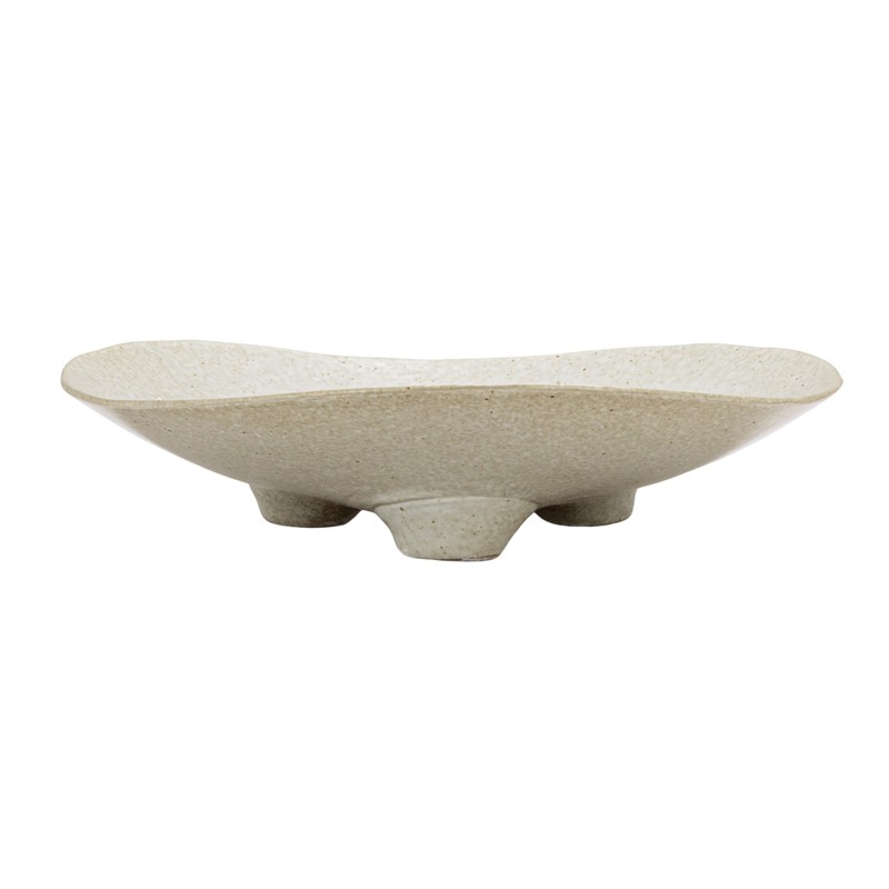 Bloomingville Speckled Stoneware Footed Platter, Matte Cream