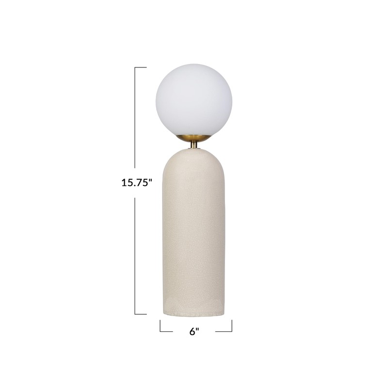 Bloomingville Stoneware Table Lamp with Frosted Globe and Inline Switch, Cream