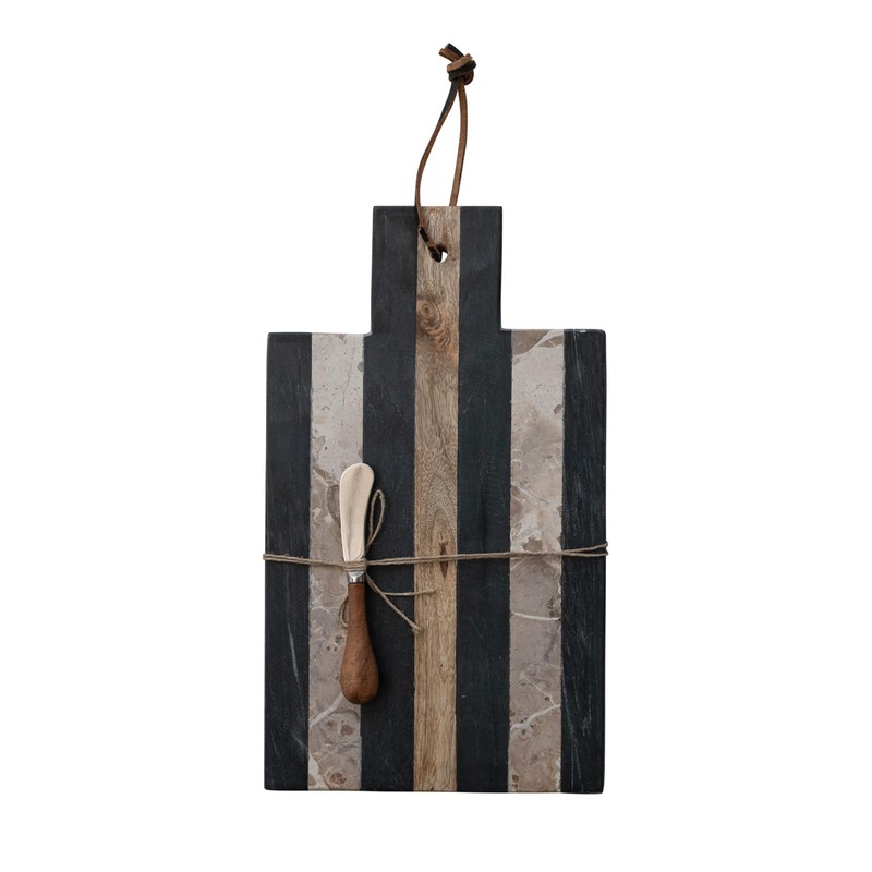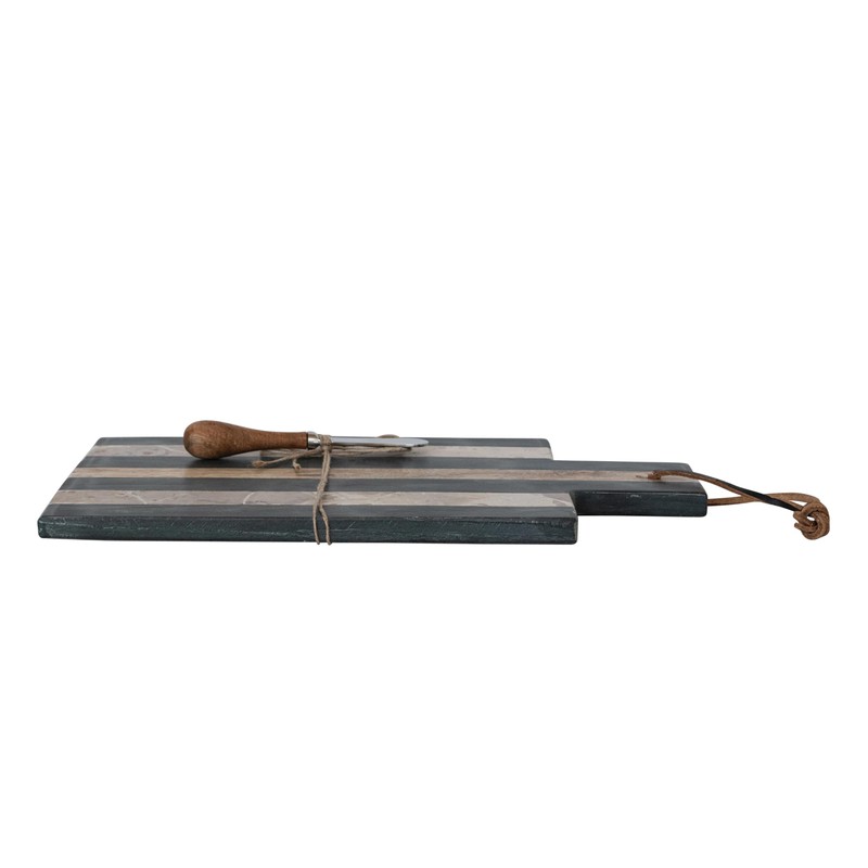 Bloomingville Striped Marble Cheese and Cutting Board with Canape Knife, Multicolor