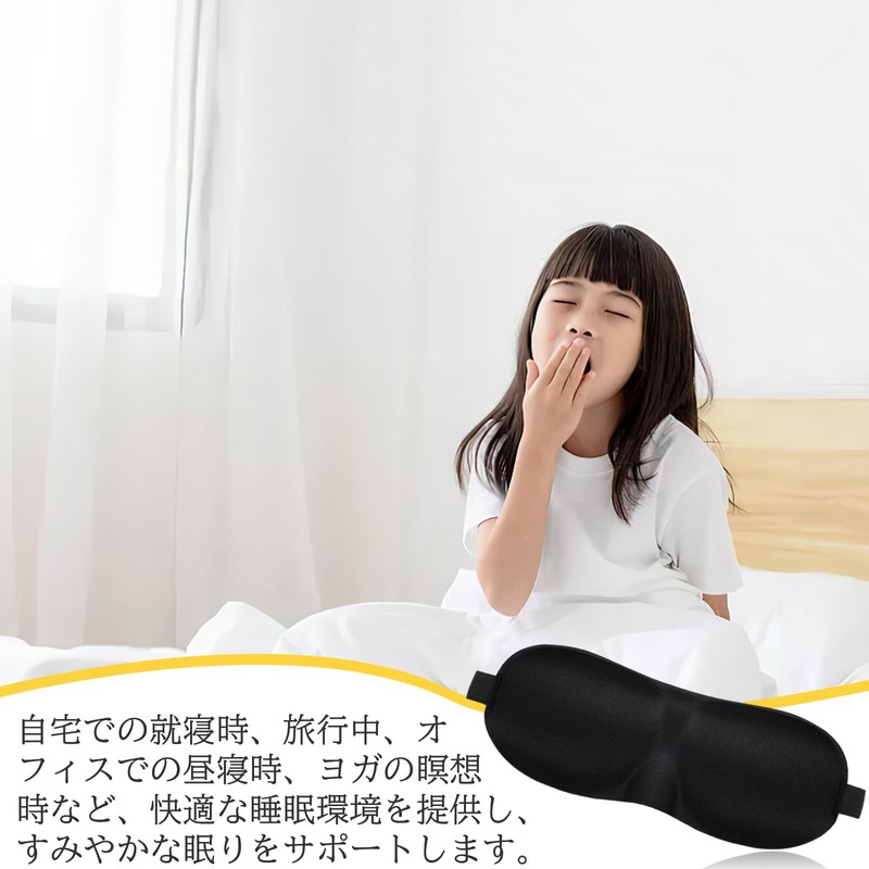 BLOOPIC アイマスク 睡眠用 快眠グッズ 目隠し 遮光率99% 3D立体型遮光アイマスク 安眠 快眠 グッズ アイスシルク生地 肌にやさしい 通気性 軽量 洗濯可能 長さ調節可能 男女兼用 旅行/ヨガ/瞑想/安眠用 (子供用 - ブラック)