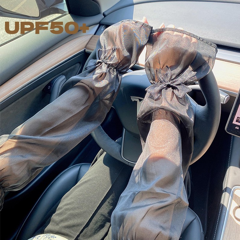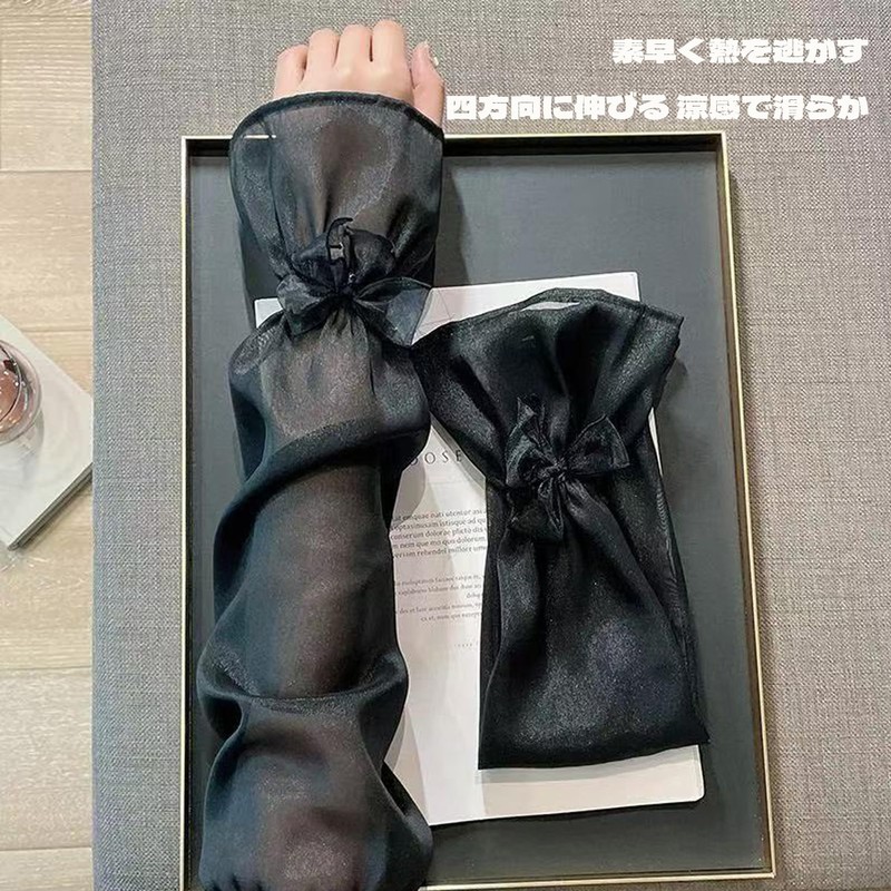 • 【リボンデザイン】アームカバー 冷感 柔らかなメッシュ素材にリボンのデザインをプラス。エレガントで可愛らしい雰囲気を演出します。一般的なアームカバーよりも快適でおしゃれな仕様で、女性に特におすすめです。どんなスタイルにも合わせやすく、上品で洗練された印象を与えます。