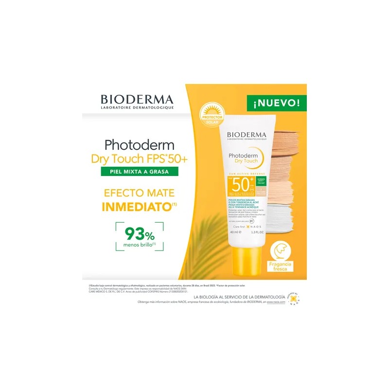 ¡Defensa total sin brillos! 🌞✨ El Bloqueador Solar Bioderma Photoderm Dry Touch Muy Claro ofrece protección FPS 50+, con acabado ultra seco y sin residuos blancos. Ideal para pieles mixtas a grasas, controla el brillo y protege tu piel del sol y el envejecimiento prematuro. 🧴💛 ¡Tu aliado diario contra el sol! ☀️
