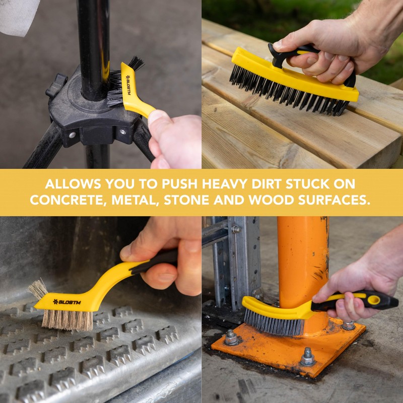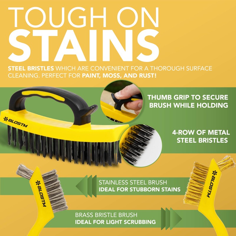 - TOUGH STAIN REMOVAL - Our versatile set of wire brushes for cleaning rust, paint, and moss allows you to effortlessly tackle stubborn stains. This hard wire brush assorted set ensures no more struggling – just effective cleaning.