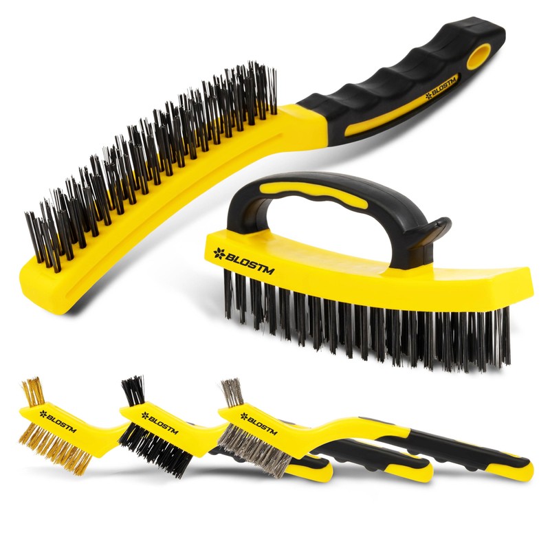 Our roughneck wire brush assorted set isn't just a cleaning tool; it's a reliable companion in your battle against dirt and grime. Our set includes a steel brush for tackling stubborn stains and a small wire brush with brass bristles for lighter scrubbing. No stain is too tough for our versatile brushes. Suitable for both home and industrial applications, these big and small wire brushes for cleaning are your go-to solution for various cleaning needs. From household chores to industrial cleaning tasks, trust BLOSTM for exceptional results. Whether you need the long handle brush to get into those hard-to-reach places, or a mini wire brush for more general tasks, this set is tailored to meet all your needs! The set comes with a handy storage hanging hole, allowing you to keep each wire scrubbing brush safe and sound between uses.
