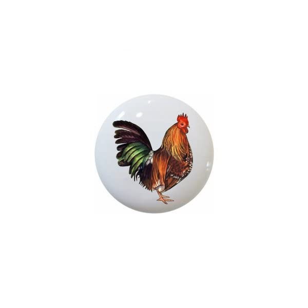 Bloucher Spur Rooster #295172 - Chickens Roosters Chicks Farm Coop - DECORATIVE Glossy CERAMIC Cupboard Cabinet PULLS Dresser Drawer KNOBS