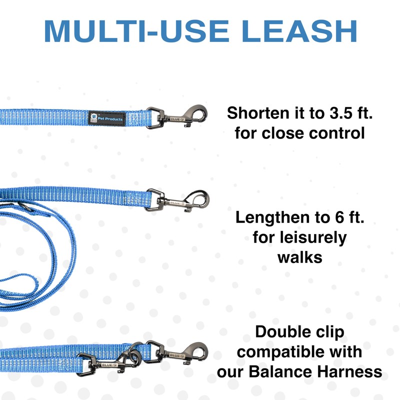 Blue-9 Reflective Multi-Function Dog Leash, Double Attachment Adjustable Lead for Obedience Training and Running, 6 Feet, Small/Medium, Blue