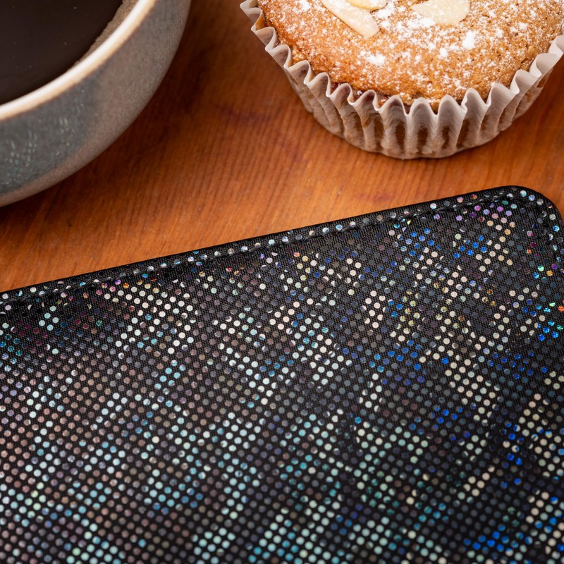 - Bold holographic finishes for a stylish, modern look. Featuring striking holographic finishes and eco- friendly inner linings made from recycled materials. Store and display your disabled parking permit in a stylish way that says more about your personality than your illness or disability
