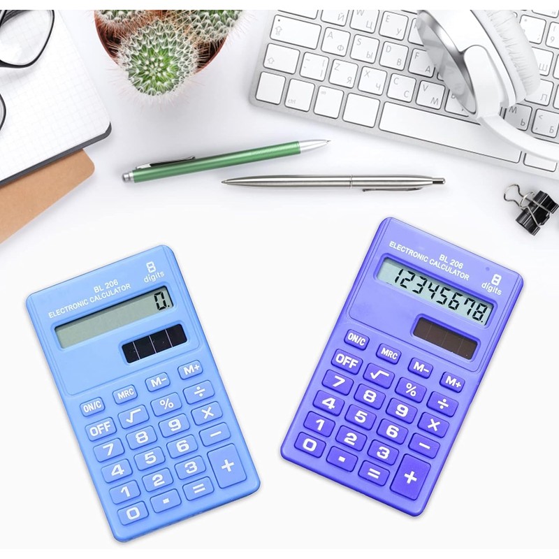 Blue Basic Standard Calculators Mini Digital Desktop Calculator, Solar Power Smart Calculator Pocket Size Basic Office Calculators for Home School Office Calculators