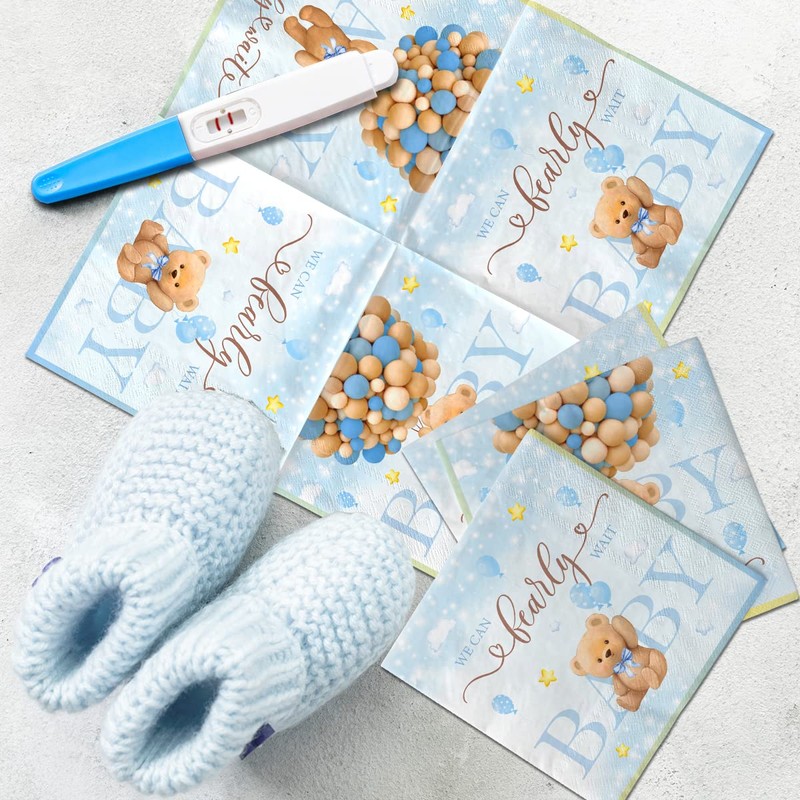 Blue Bear Gender Napkin-40pcs Gender Reveal Palstic Napkin