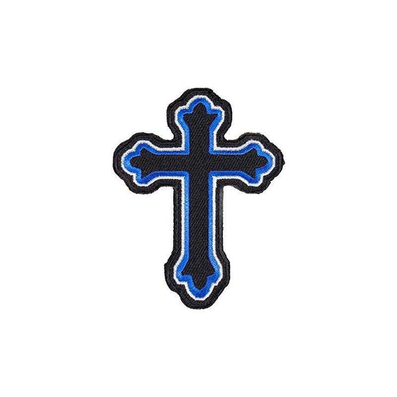 Blue & Black Decorative Cross Patch, Religious Cross Patches