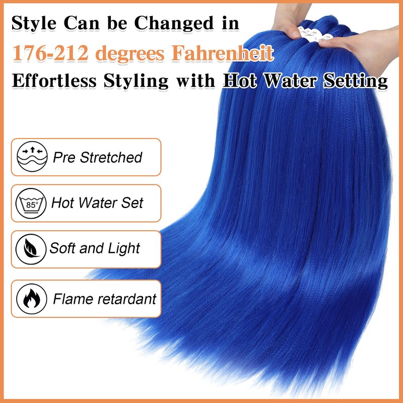 - 【Pre streched Braiding Hair Package: 】 The order includes 8 packs of 26inch blue braiding hair pre stretched and 10 pcs rings; other 12-32 inch prestreched braiding hair are available, rich color series braiding hair for your multiple needs, get all your ideal hair so easy!