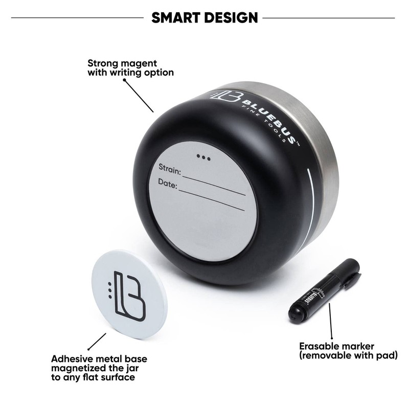 Blue Bus BUNKER Stash Jar Smell Proof Container (265ml) Stainless-Steel Sealed Airtight Jar for Herbs, Spices, Coffee, Teas, (2 pack,Black)