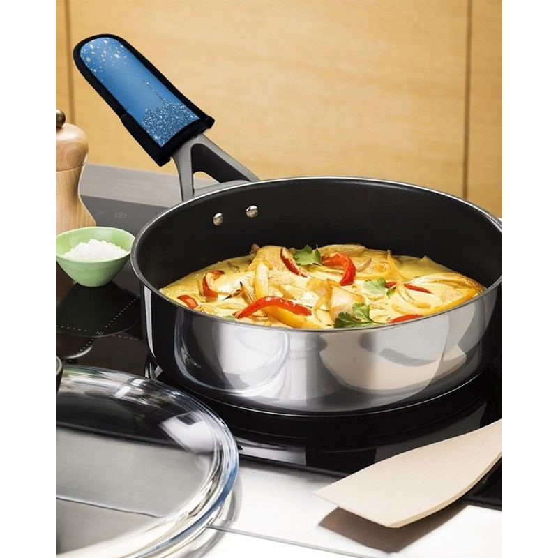 - Durable Material: The pan handle holder is made of high-quality polyester fabric, soft and thick, comfortable to the touch. The liner is thick enough to have a certain insulation effect and is safer to use. Well-stitched seams ensure years of durability. Reusable, easy to clean, machine washable, saving time and effort. Compared with the silicone skillet handle cover, pan handle sleeves is easy to remove after cooking for easy cleaning.