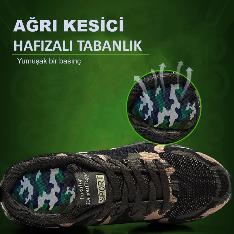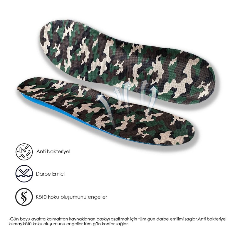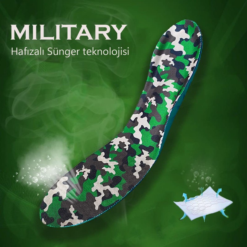 Blue Gel Askeri Bot ve Ayakkabı Tabanlığı, Memory Foam Yumuşak Darbe Emici İç Taban, Ark Destekli Konforlu Tabanlık, Eğitim ve İş Ayakkabısı Tabanlığı (40-45, Kamuflaj)