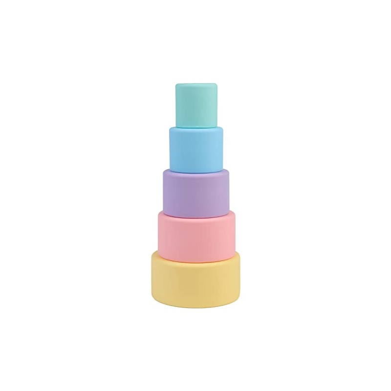 BLUE GINKGO Silicone Stacking Cups - Nesting Cups and Silicone Stacking Toy - Open Ended Montessori Toddler and Baby Stacking Cups - Neutral Baby Toys (5 Cups - Pastel)