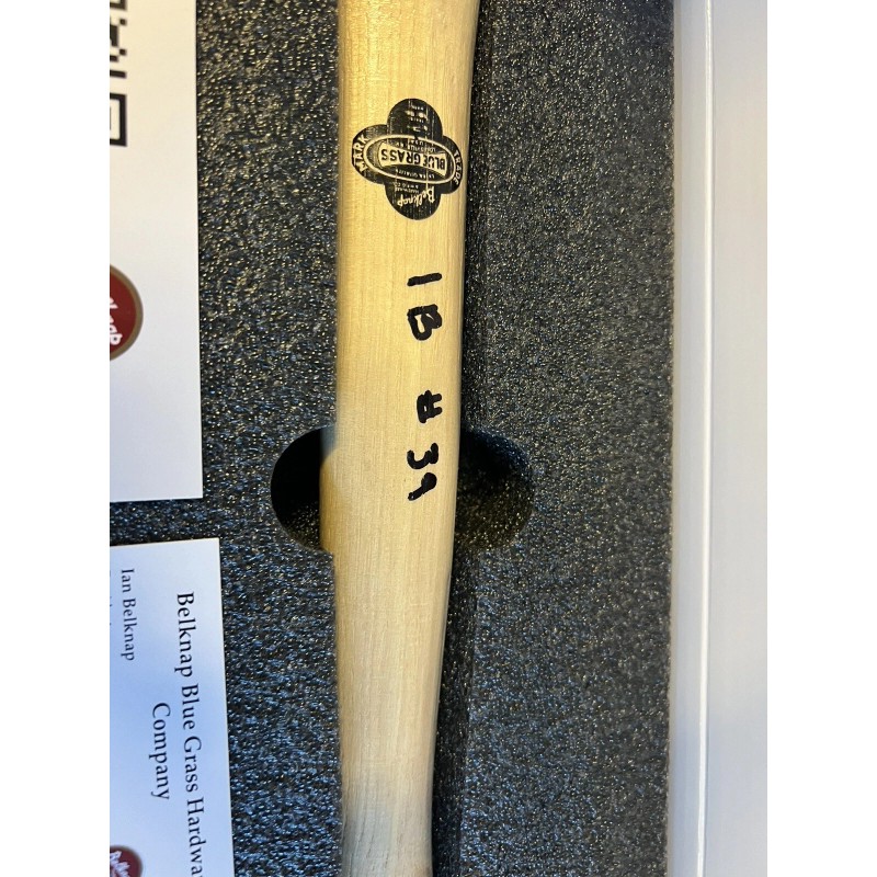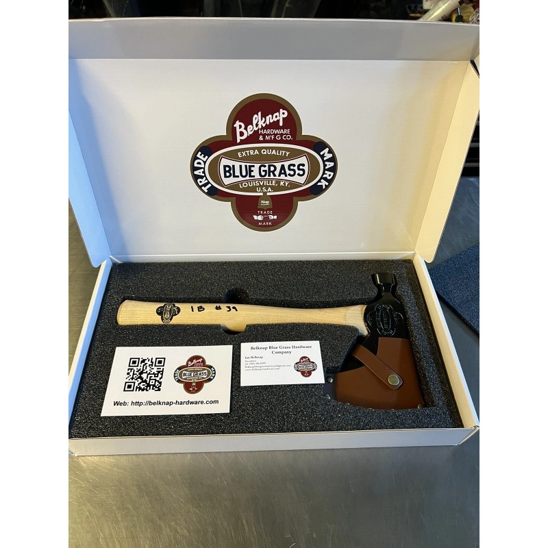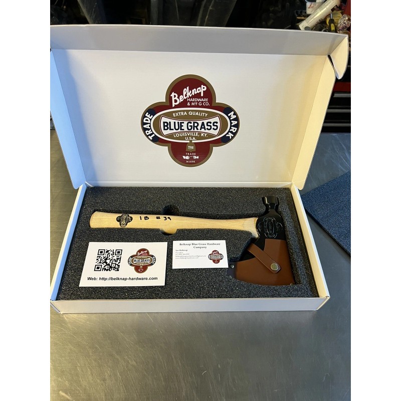 This is a rare and collectible camping hatchet from the renowned Blue Grass Hardware brand. The hatchet features the initials of the great, great, great grandson of the founder of Belknap Blue Grass Hardware and current owner, Ian Belknap. Its sturdy design and high-quality craftsmanship make it a valuable addition to any woodworking or tool collection. This item is perfect for carpentry and camping enthusiasts alike. Only 61 available as of 3/24/24 of the original 100 signed. Hatchets are initialed and numbered personally by Ian Belknap.