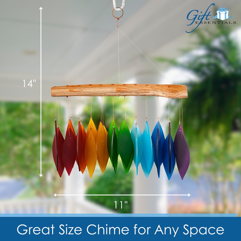 Blue Handworks Rainbow Glass Chime, Sandblasted Glass and Found Wood Handcrafted Wind Chime