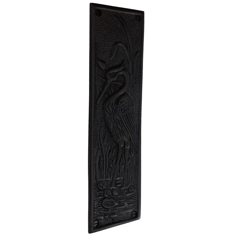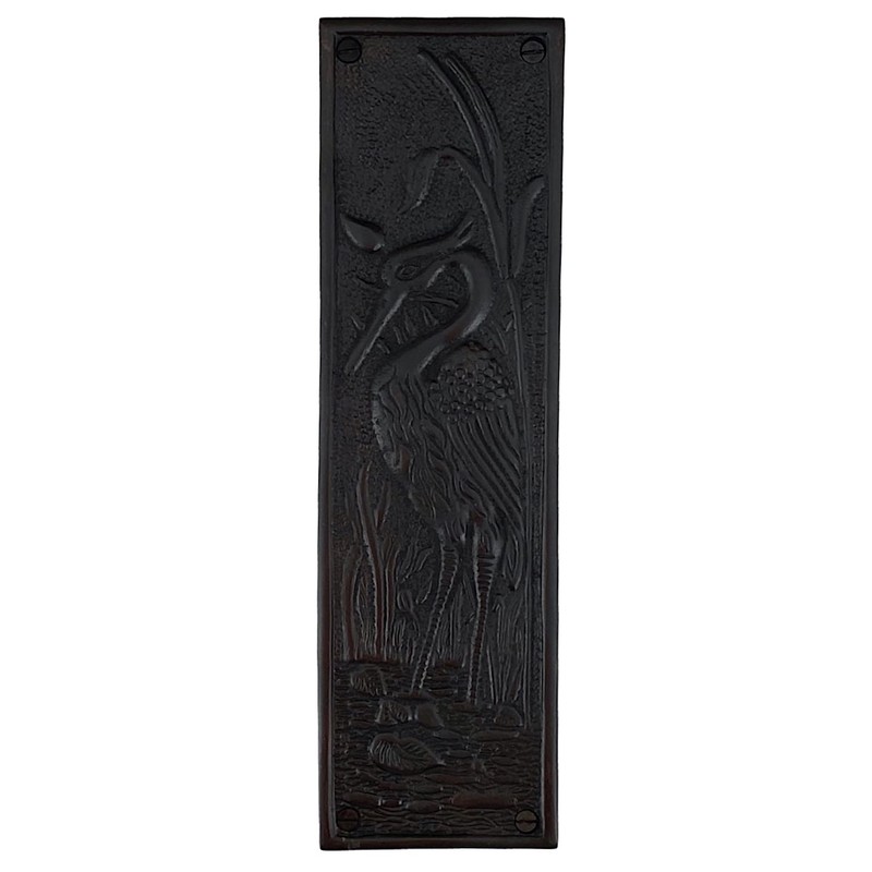 Blue Heron Motif Push Plate in Aged Bronze Finish - The Marshland
