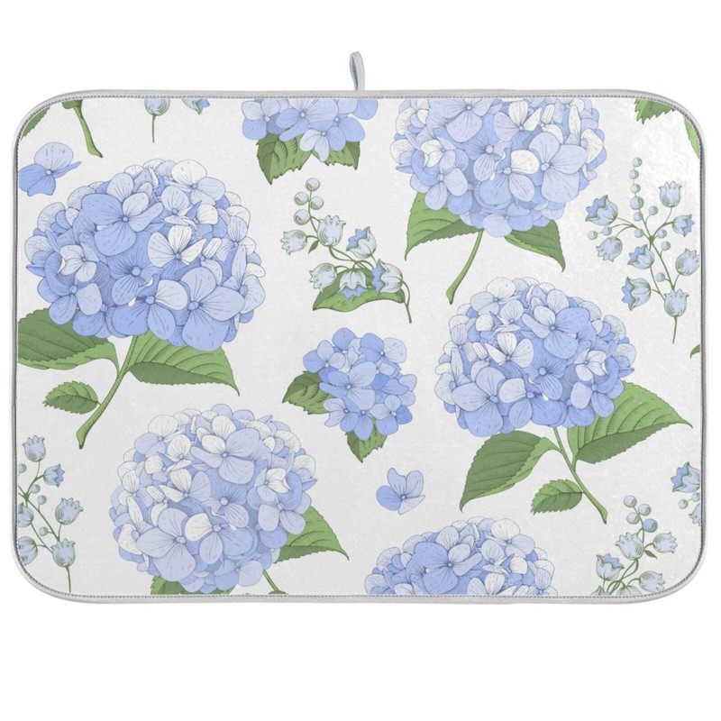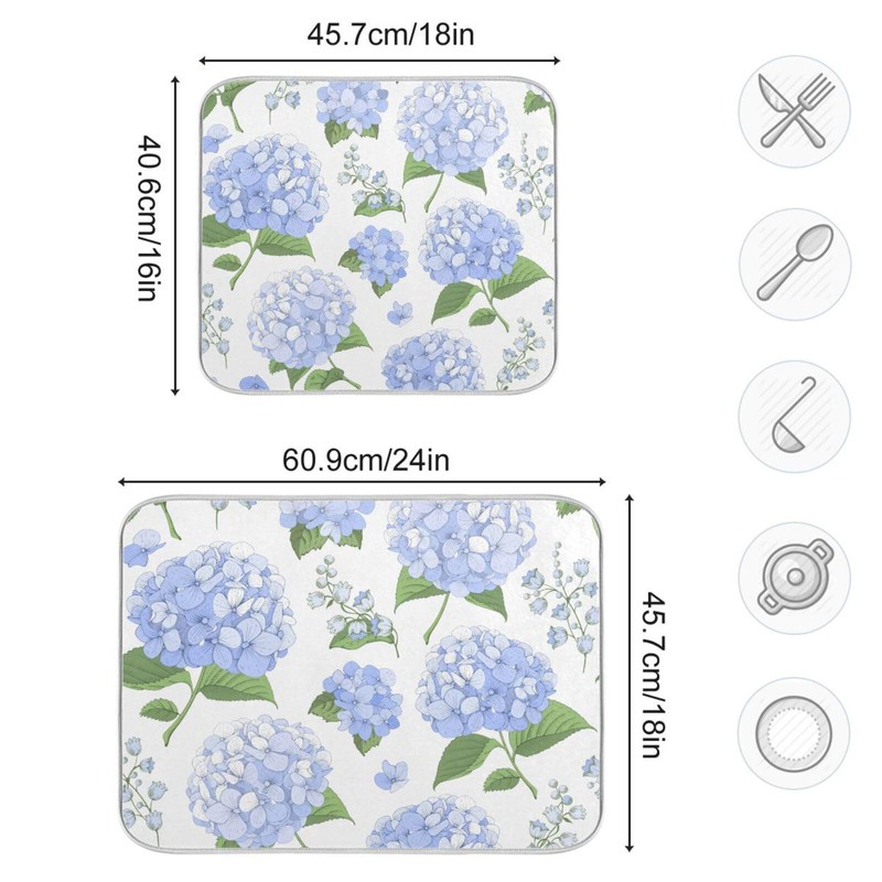 Blue Hydrangea Flowers Dish Drying Mat for Kitchen Counter Large Super Absorbent Drying Mat for Countertop Protector Dishes Pad Kitchen Drying Matt 18x24 inch